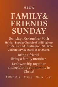 Thank you for visiting our website. We hope that it will be a blessing to you. Here you will be informed about what our church has to offer. If you live in the area, are not yet affiliated to a church, or if you are just visiting, come and worship with us. You will find that we are a congregation that has a deep commitment to the Lord Jesus-Christ, a firm belief in God the Father, and a total submission to the Holy Spirit. Although our services are mainly conducted in Haitian-Creole and French you will still feel our fellowship welcoming and caring. We see to it that we seek each other's edification in christian love.