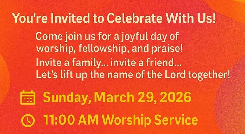 We invite you to join us at 11:00 AM on Sundays to worship our God at the Church or on Youtube.
